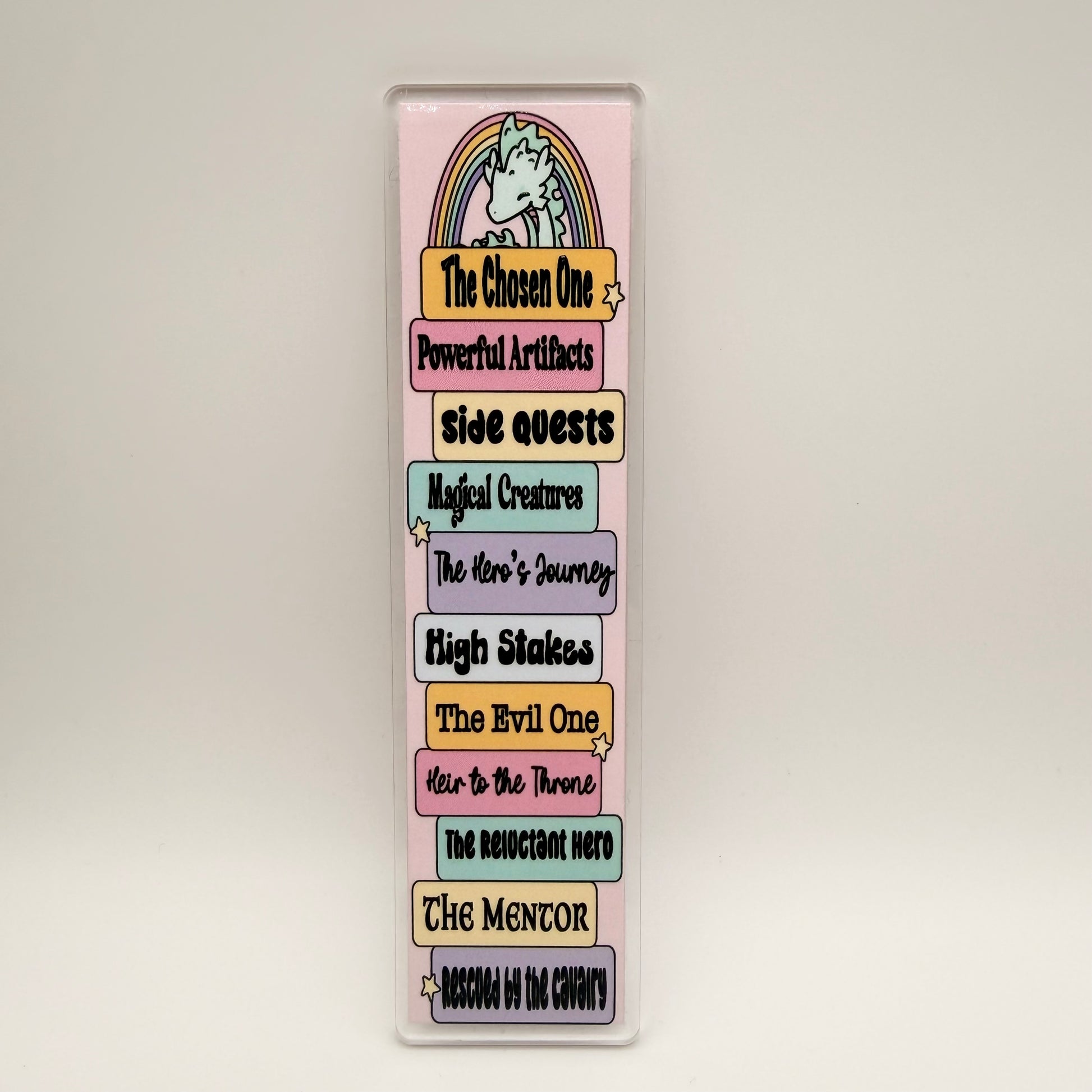 The chosen one fantasy themed book stack design on an acrylic bookmark. Bookmark measures 6" x 1.5"